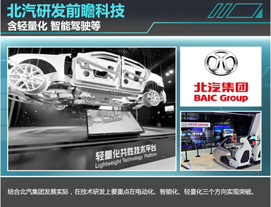 与此同时,智能化也是北汽“十三五”期间三大发展方向之一,“未来汽车都将实现智能驾驶,我们要以研发下一代智能汽车为突破口,迅速追赶国内外的先进技术水平。”现阶段,北汽与乐视展开合作打造智能汽车,并于科博会上展示了北汽智能汽车雏形,并打造了一套名为“智行方程E=mc2”的城市智能出行服务生态系统。