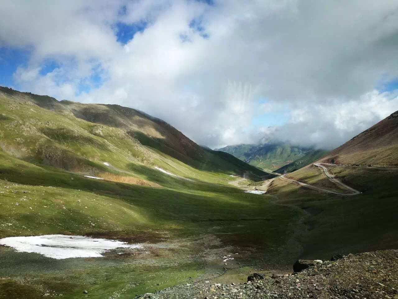 大冬树山垭口是昆仑山和祁连山口的分界线,虽然是人间六月天,但山上寒风凛冽,随处可见残雪。资料显示,大冬树山垭口的氧气只有平原的60%,气压比平原低40%,水的沸点只有85度,紫外线强度比平原高一倍。