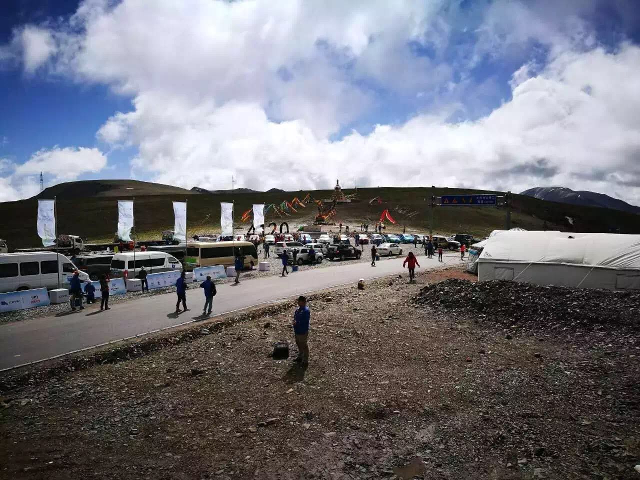 结束了坡道测试,车队一路继续向上爬升。在经过多处“云里飞车”的险峻山路后,终于到达全赛程最高点——海拔4120米的大冬树山垭口。