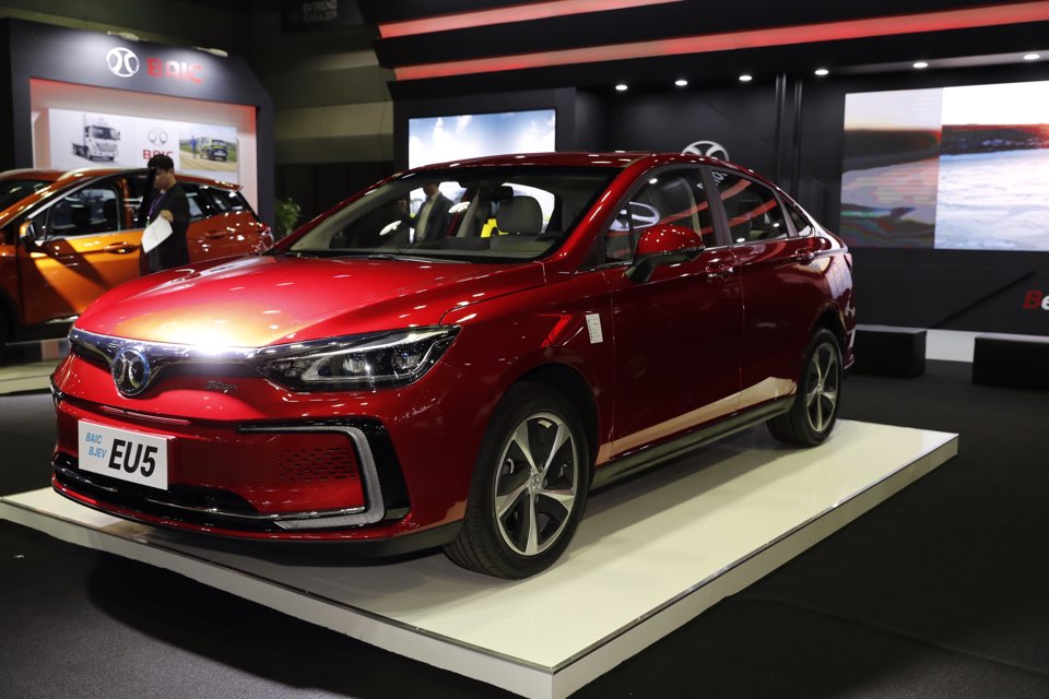 BAIC and its Korean partner BMK showcased three pure electric vehicles, namely EU5, EX5 and EX3, at EV KOREA in Seoul on May 2, 2019.