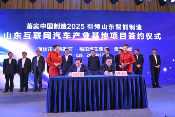 当天,北汽福田与潍坊市人民政府正式签约,共同打造山东互联网汽车产业基地。同时,北汽福田与浪潮集团签署战略合作框架协议,中国商用车第一品牌牵手中国本土综合实力最强的大型IT企业之一,双方将通过跨界融合创新,联手打造中国互联网汽车生态系统。