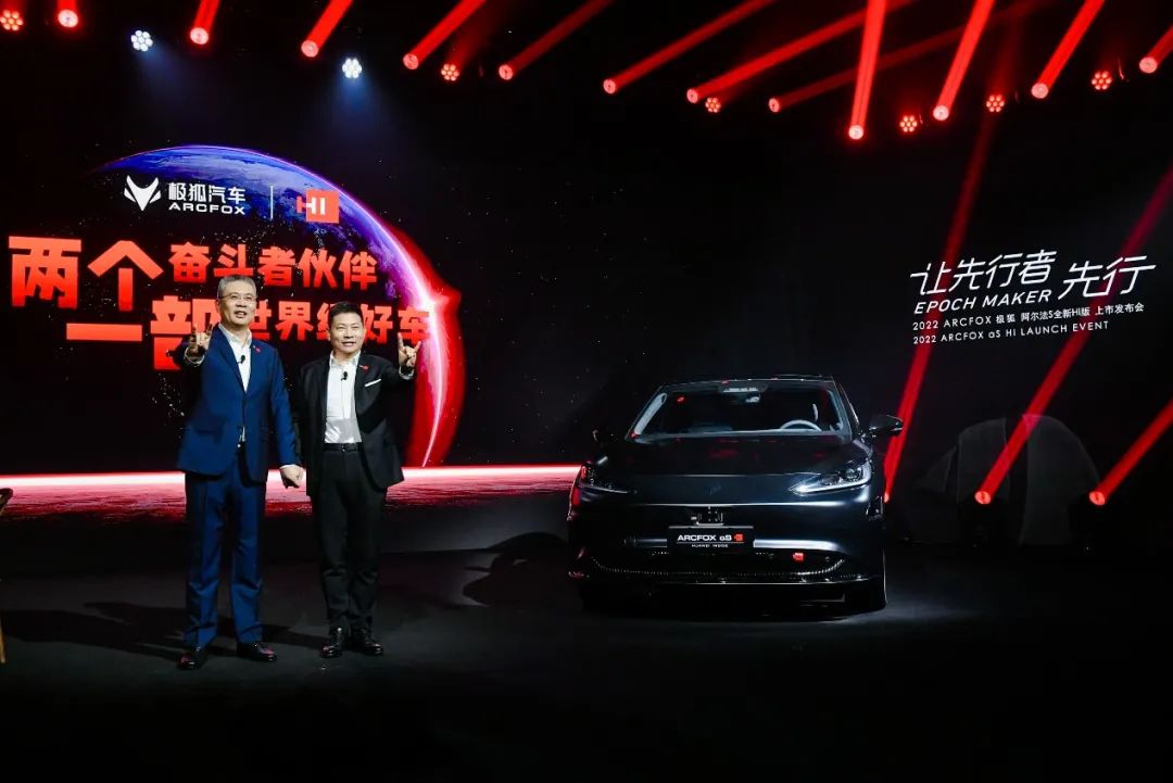 就在刚刚,ARCFOX极狐阿尔法S全新HI版车型正式上市,国产视频 副总经理、北汽新能源董事长刘宇,华为常务董事、终端BG CEO、智能汽车解决方案BU CEO余承东同台握手,共同见证这款“智能驾驶第一车”的隆重登场。